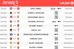 西甲公布第11轮赛程:皇马和巴萨分别在主场对阵瓦伦西亚和埃尔切