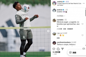 赛季0出场!恩德里克晒皇马训练照:感恩